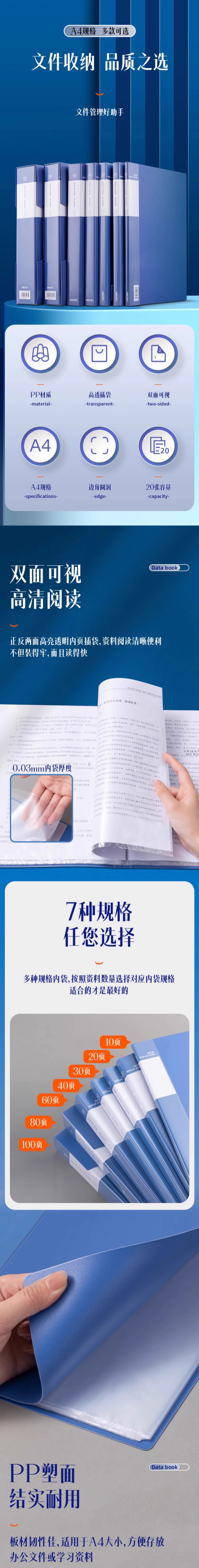 得力文件夹a4资料册透明插页档案夹收纳册文件袋档案整理办公用品